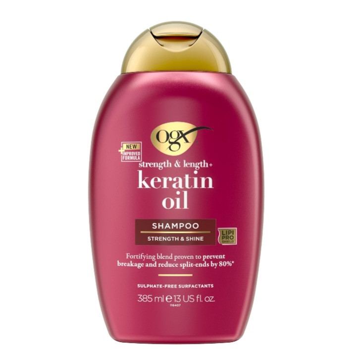 شامپو کراتین اویل OGX سری جدید Strength & Length+ با فرمولاسیون پیشرفته و غنیشده با کراتین و روغنهای مغذی (آرگان، آووکادو و …)، مخصوص موهای ضعیف، شکننده، آسیبدیده و دارای موخوره طراحی شده است.